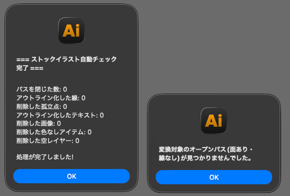 スクリプト実行後は、Illustratorの「取り消し(Ctrl+Z / Cmd+Z)」では元に戻せません。