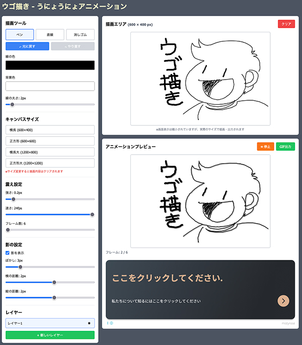 ウゴ描きは、誰でも簡単にうにょうにょなアニメーションを作れるツールです。